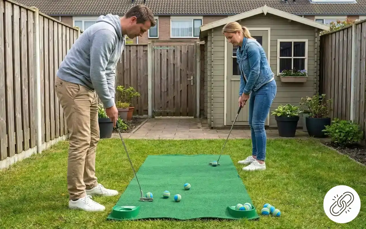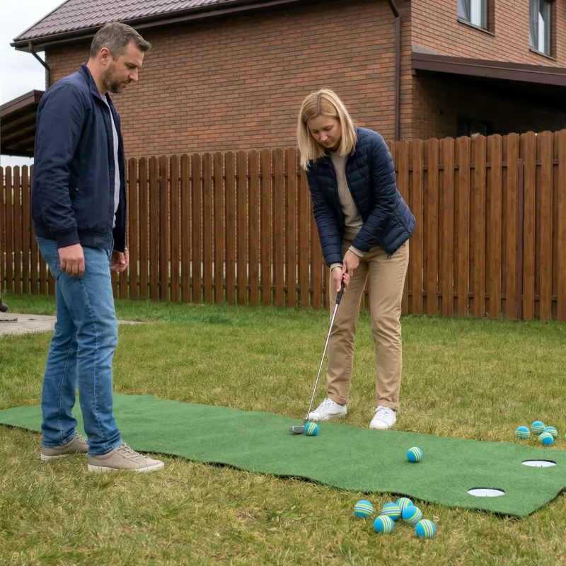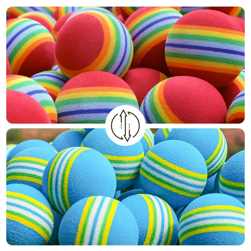 Posso allenare lo swing in casa senza fare rumore o danni. Le strisce colorate sono perfette per ritrovarle in giardino dopo la pratica.