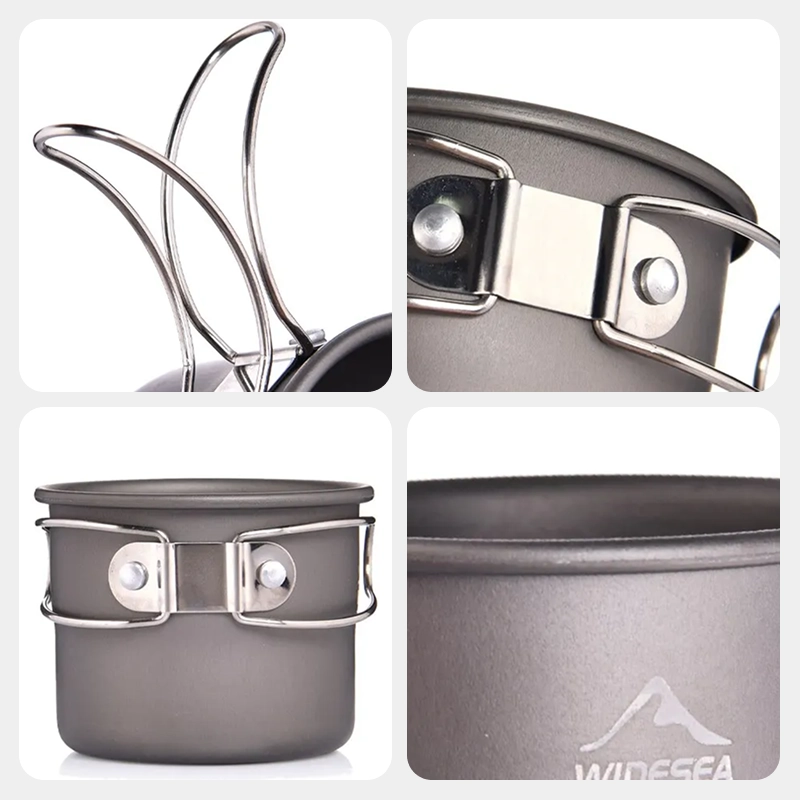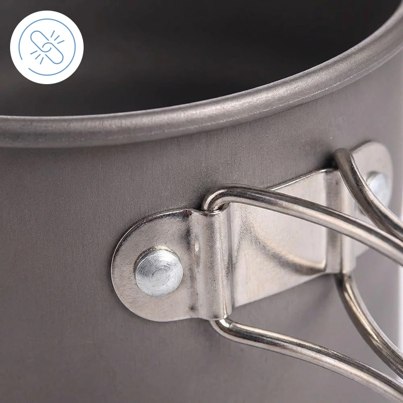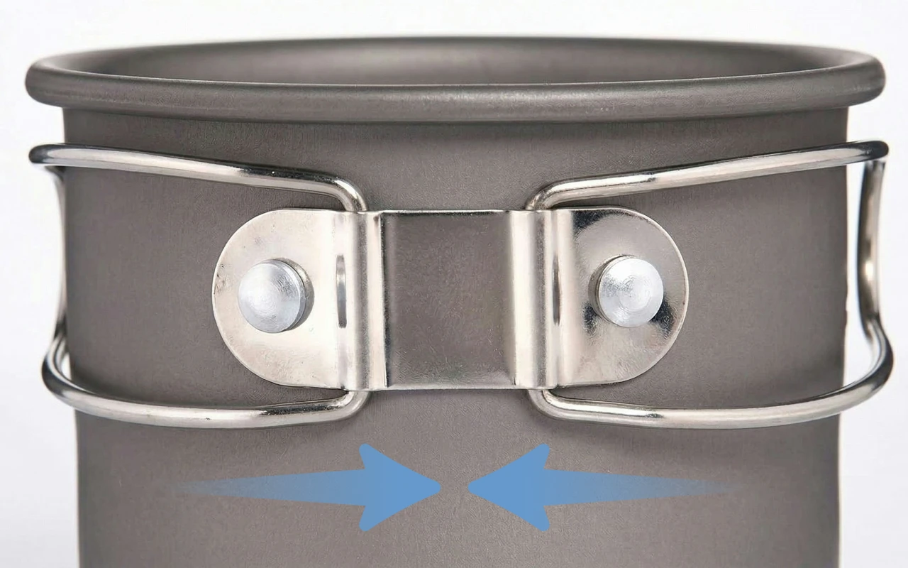 Ho usato la tazza ogni giorno durante un viaggio in canoa. Nessun sapore strano, resta stabile sul fornello e i manici rimangono abbastanza freddi da poterli afferrare facilmente.