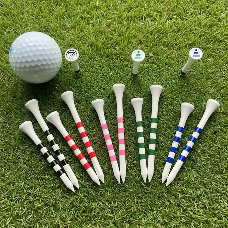 Le ho comprate per me dopo aver perso continuamente le tee bianche semplici. Le bande vivaci sono facili da vedere e i miei drive sembrano più costanti grazie ai chiari segni di altezza.
