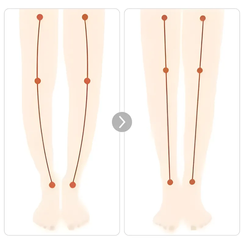 Migliora l'allineamento delle gambe e aiuta a correggere la forma delle gambe nel tempo. Il supporto costante incoraggia una posizione naturale durante la camminata ogni giorno.