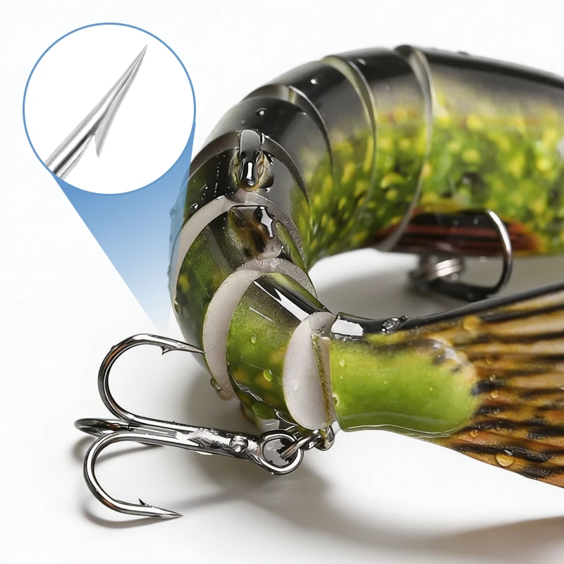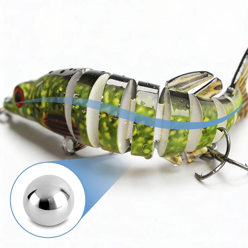 Otto sezioni flessibili aiutano questa esca a nuotare come una preda reale. Ogni movimento attira i predatori e aumenta i tuoi risultati.