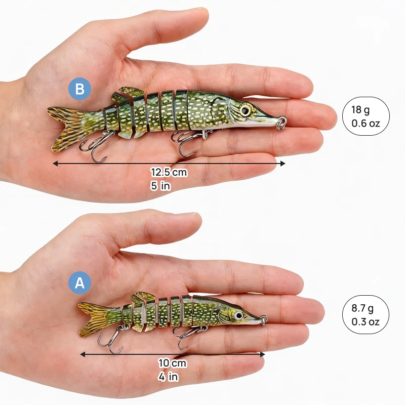 Continuo a prendere più persici e lucci con queste esche. Le giunture le fanno muovere in modo molto naturale. Ottime da avere nella mia borsa da pesca.