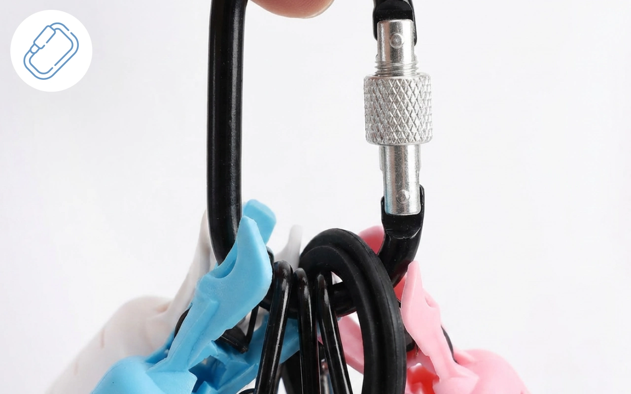 Riponi l'attrezzatura in modo ordinato e tieni tutto in ordine ad ogni uscita. Il moschettone mantiene tutto insieme, facendo risparmiare spazio nel tuo kit.