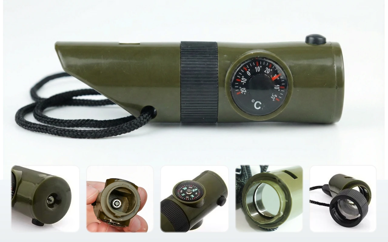 Ho comprato il fischietto di sopravvivenza per i miei viaggi in campeggio da solo. Adoro avere insieme termometro, piccolo vano portaoggetti e luce, così non devo frugare nello zaino.