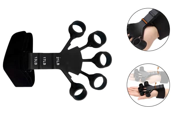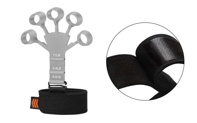 Il rafforzatore per la presa consente di personalizzare la difficoltà dell’esercizio. Inizia a un livello confortevole e aumenta gradualmente l’intensità man mano che la forza della tua mano migliora.