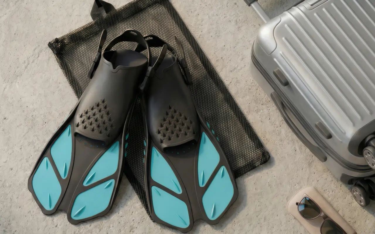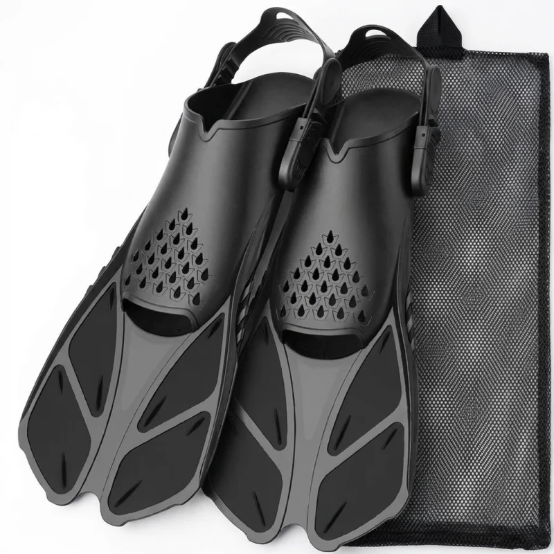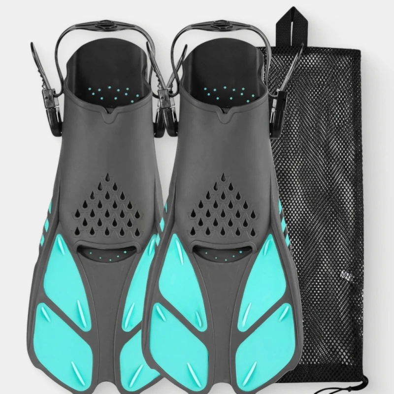 Le pale corte e robuste possono essere facilmente riposte in valigia per i viaggi ovunque. La borsa in rete e gli inserti proteggono le pinne e mantengono tutto in ordine.