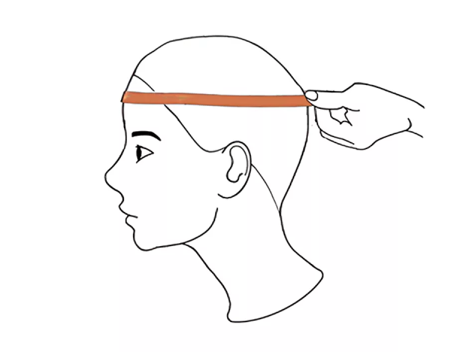 - 1. Avvolgi il metro da sarta attorno alla parte più ampia della testa, appena sopra le sopracciglia e le orecchie.