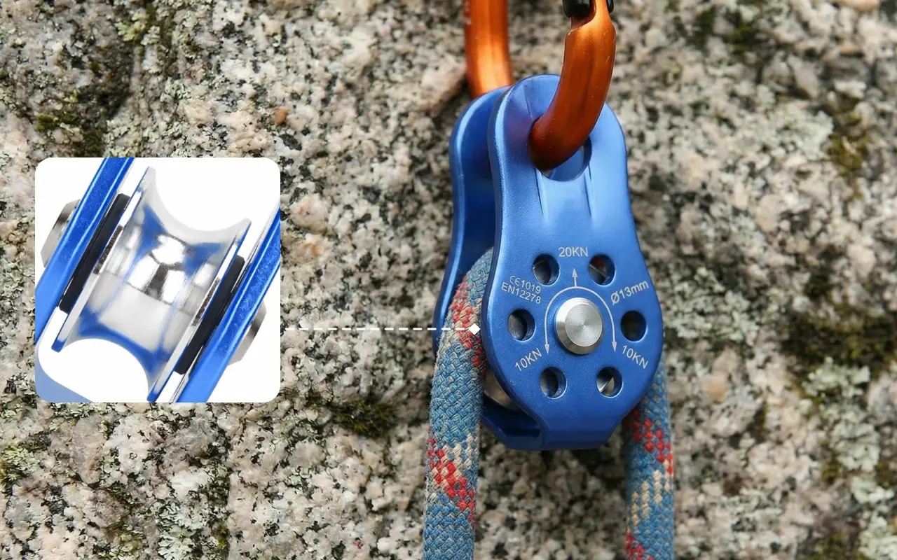 La carrucola liscia permette alle corde di scorrere dolcemente ogni volta. Riduce l'attrito per una progressione più veloce e sicura su pareti ripide.