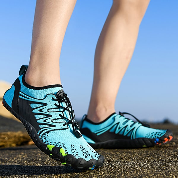 Versatili e ideali per attività all'aperto come beach volley, kayak e rafting. Il nostro design unico offre un'eccellente aderenza su superfici bagnate e asciutte, perfetto per avventure acquatiche.