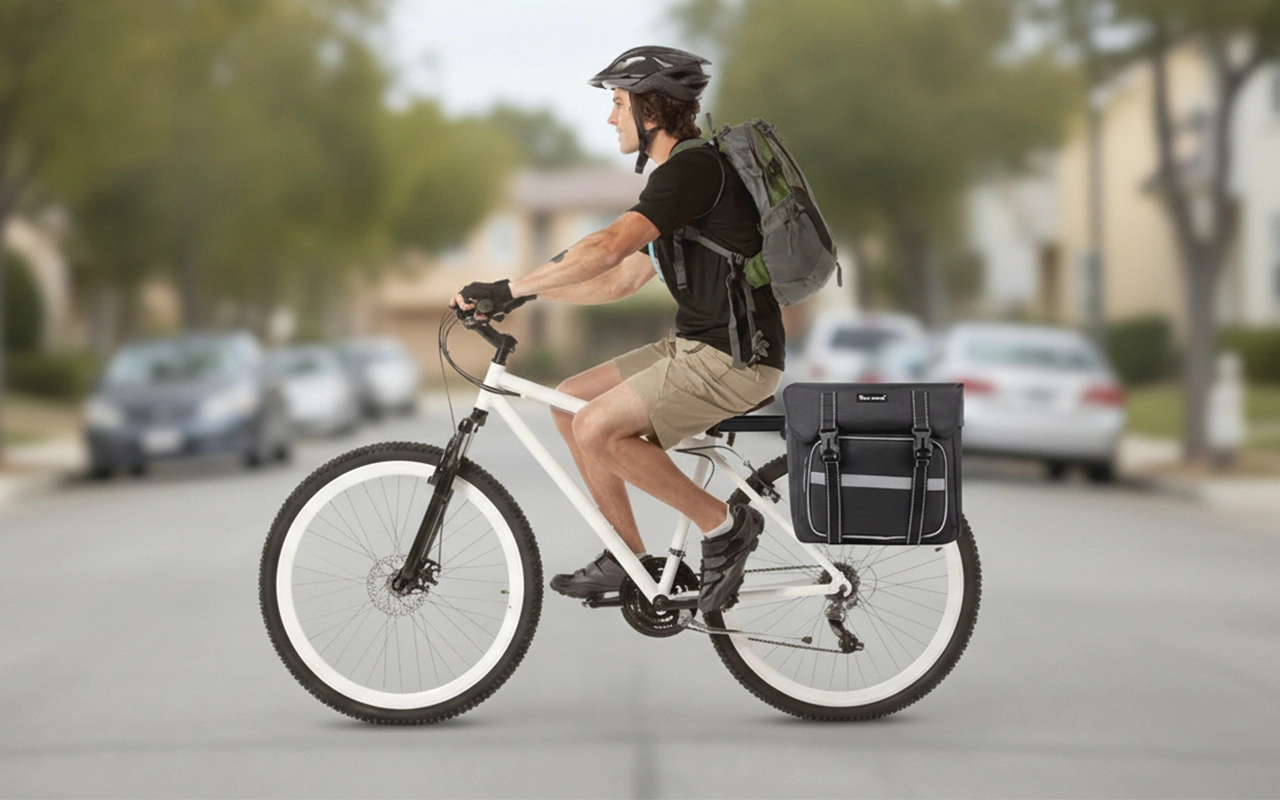 Il peso bilanciato sul portapacchi posteriore riduce lo sforzo sulla schiena. Pedalare risulta più fluido anche con carichi più pesanti.