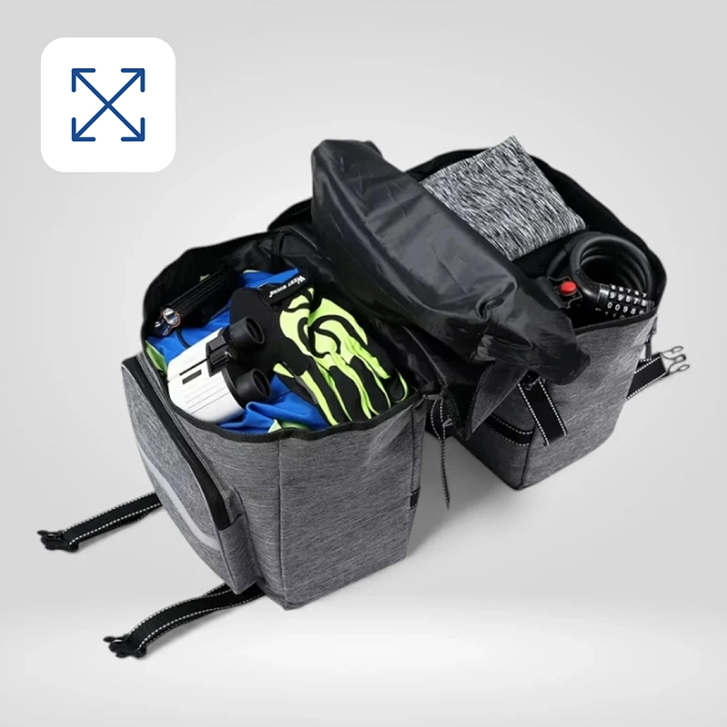 Ho appena portato la mia nuova borsa portapacchi in un lungo viaggio. Le due grandi tasche hanno contenuto tutto il mio cibo e i miei vestiti, e niente si è bagnato durante il temporale.