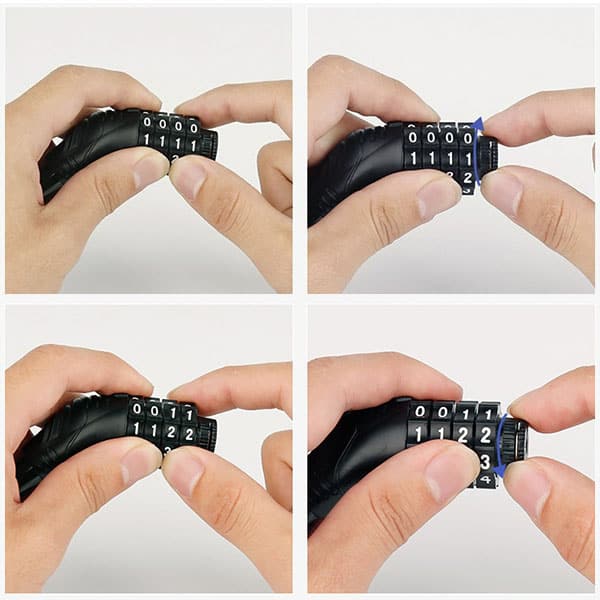 Ogni dettaglio garantisce la tua tranquillità, dalla catena in acciaio al meccanismo di chiusura. Questo lucchetto per bici è dotato di una combinazione a 4 cifre. Con essa, la possibilità di furto è notevolmente ridotta.
