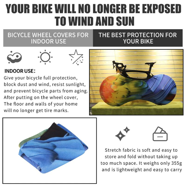 I materiali utilizzati sono elastici e si adattano bene alla forma della bici. Riduce il fruscio e il rumore causati dal vento e garantisce una vestibilità aderente e sicura per la conservazione a breve o lungo termine. È facile da mettere e togliere in meno di un minuto. La parte superiore della copertura per ruote è dotata di una fascia elastica ad alta elasticità per evitare scivolamenti. Non preoccuparti dell’installazione: grazie alla sua flessibilità è semplicissima. Queste coperture per ruote sono adatte per pneumatici di dimensioni: 60-66 cm e 69-73 cm. È compatibile con la maggior parte dei tipi di bici come bici da corsa, mountain bike, cruiser, bici da città, ecc.