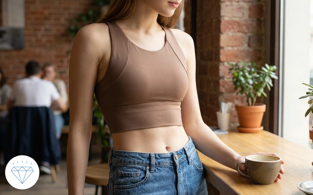 Lo uso per Pilates e per le commissioni quotidiane. Il tessuto liscio non pizzica e adoro come il taglio fa sembrare le mie spalle toniche e definite.