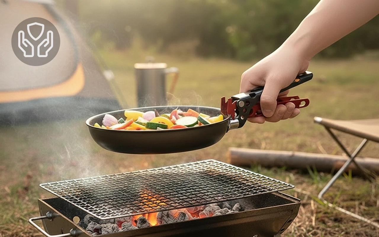 Il gripper Threo protegge le tue dita mentre sollevi pentole calde. La lega di alluminio resta resistente in ogni situazione all'aperto. Perfetto per qualsiasi campeggio o emergenza in cucina.