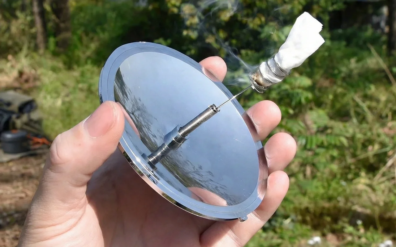 Sorprendente la velocità con cui sono riuscito ad accendere un fuoco usando solo il sole, anche con il vento forte. Utile per pause veloci all’aperto.