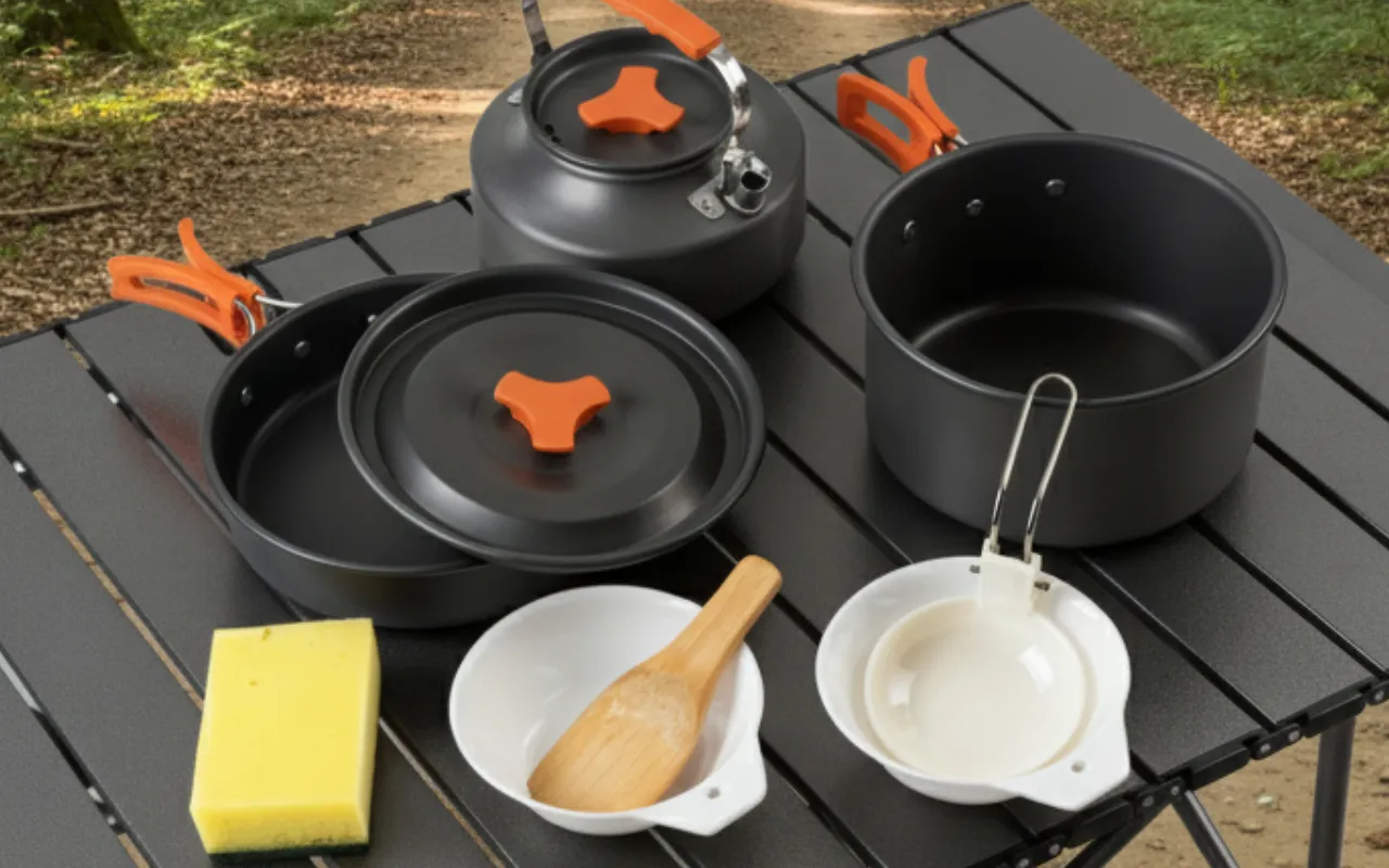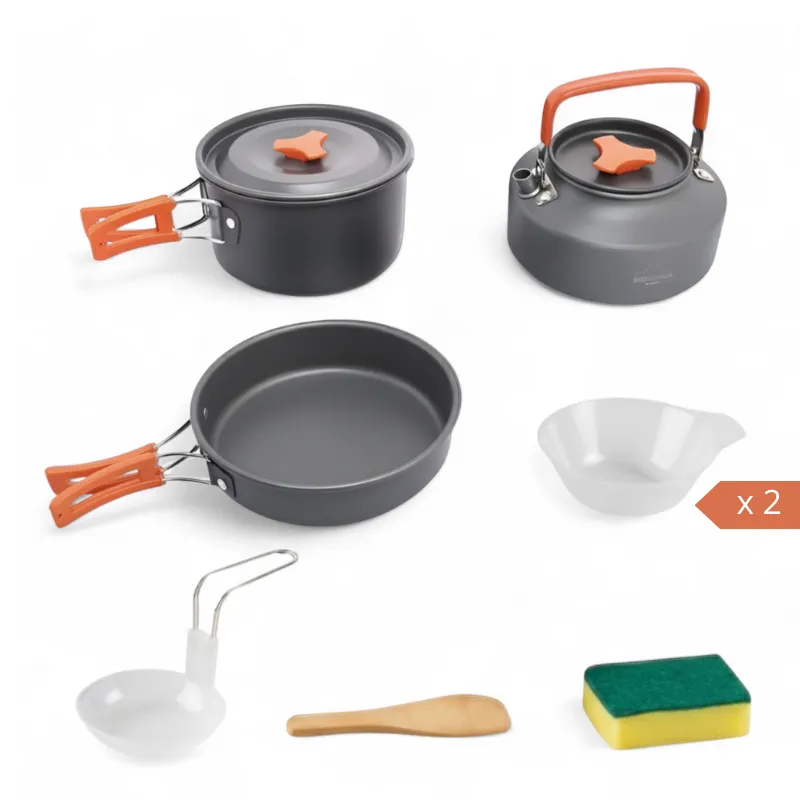 Tutti gli utensili necessari per cucinare all’aperto sono inclusi. Prepara, servi e pulisci velocemente ovunque tu sia in campeggio.