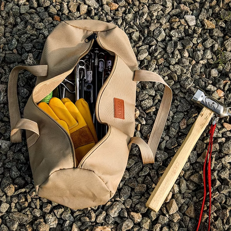 L’ho comprata per il tendalino della roulotte di mio padre. Gli piace che l’interno sia abbastanza spazioso per picchetti e guanti da lavoro, con posto anche per un piccolo martello.