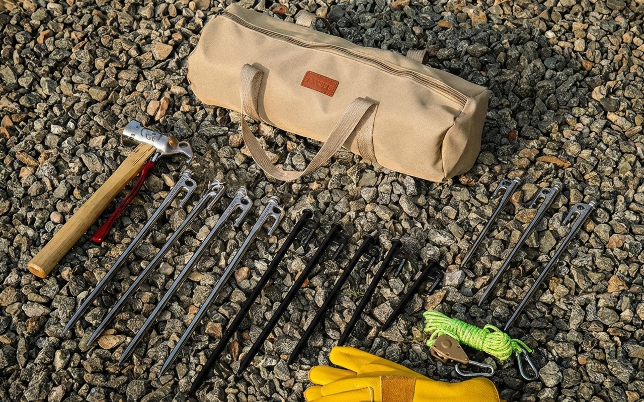 Presto spesso le tende agli amici, quindi tengo picchetti di scorta e pezzi di riparazione in questa custodia. Il design semplice fa sì che nessuno mi restituisca più le cose alla rinfusa.