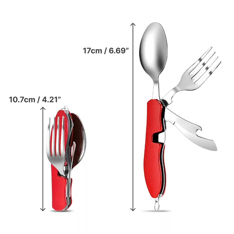 Il nostro utensile da campeggio pieghevole ha dimensioni compatte, che lo rendono facile da trasportare anche in uno zaino piccolo o in un cestino da picnic.