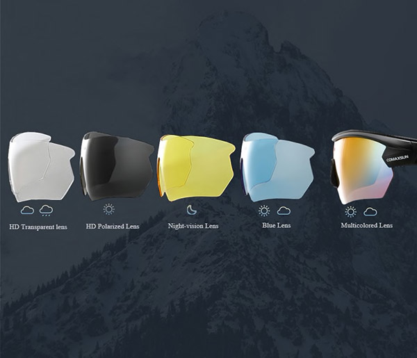 ✔️ DIVERSE OPZIONI DI LENTE — 5 colori di lenti ottiche di qualità tra cui scegliere. Adatte a diverse condizioni di luce, possono essere sostituite in base al meteo.