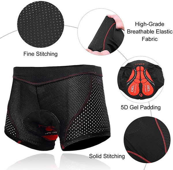 Questi pantaloncini da bici sono dotati di un’imbottitura 5D traspirante per garantire il massimo comfort e migliorare le tue prestazioni. Il cuscinetto è spugnoso e reattivo, perfetto per le uscite prolungate. L’imbottitura offre protezione quando si affrontano buche o superfici irregolari. La biancheria intima da ciclismo aiuta a rendere la tua pedalata molto più confortevole e sicura da qualsiasi tipo di infortunio. È perfetta per mountain bike, bici da strada, spinning, moto, allenamenti virtuali in bici, ecc.