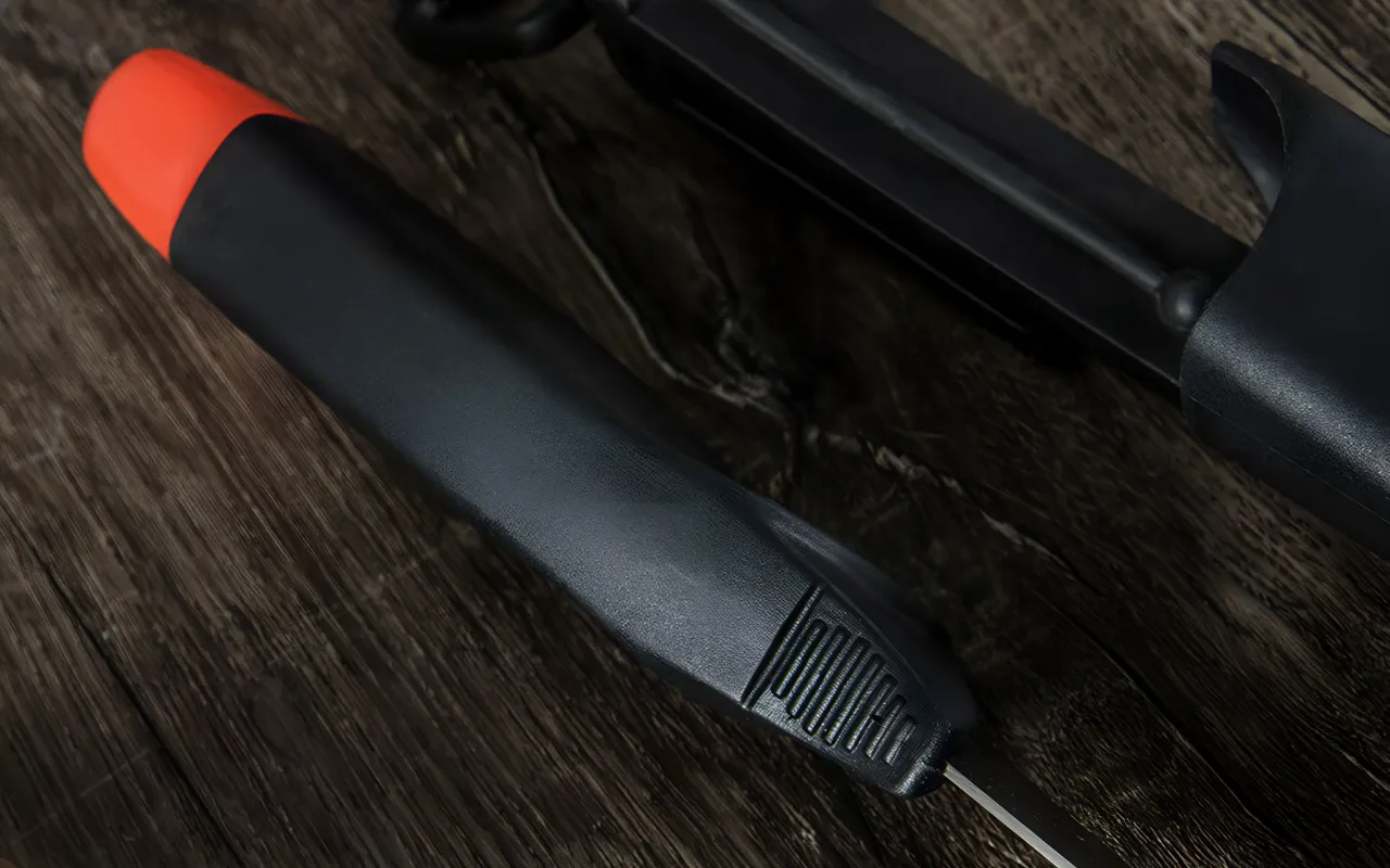 Una copertura robusta protegge le mani da scivolamenti accidentali e danni. Trasportalo con sicurezza sapendo che la lama rimane sicura quando riposta.