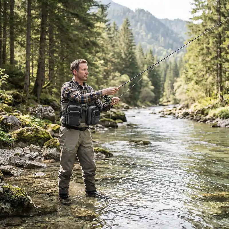 Come principiante di pesca a mosca, questo gilet mi ha aiutato a restare calmo. Ogni tasca ha un uso, e posso prendere tronchesine o galleggiante senza distogliere lo sguardo dall’acqua.