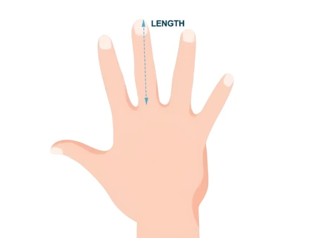 - 1. Misura dalla base del palmo fino alla punta del dito medio.