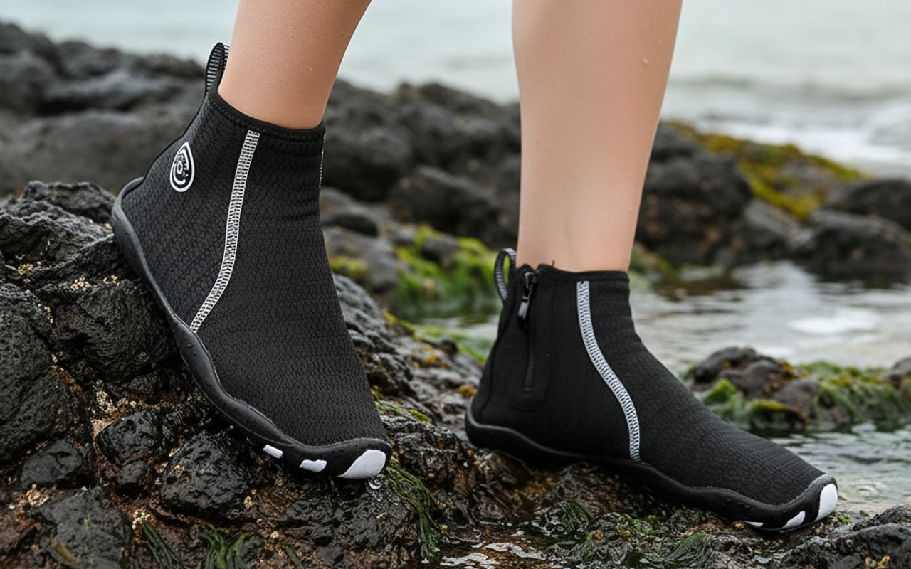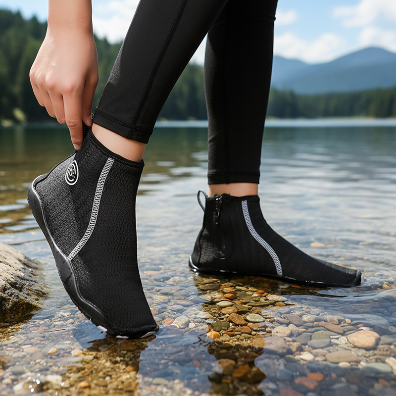 La tomaia alta protegge le caviglie da rocce appuntite e sabbia calda. Le suole resistenti riducono le scivolate, assicurando equilibrio anche su superfici bagnate o irregolari.