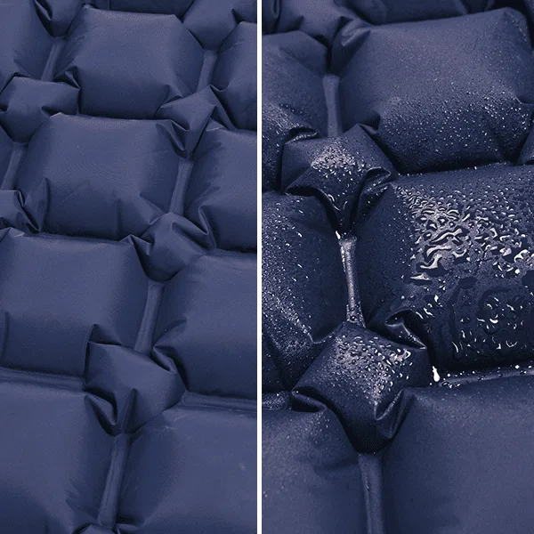 Il materasso ad aria Threo è pronto a offrirti una comodità senza pari. Trascorri momenti piacevoli all'asciutto e in sicurezza, sapendo che nulla disturberà il tuo sonno. Il nostro materassino è impermeabile all'umidità, e la sua costruzione robusta e il colore blu navy lo rendono resistente a usura e strappi. È compatto e leggero, così potrai goderti un riposo ottimale ovunque tu vada.