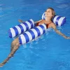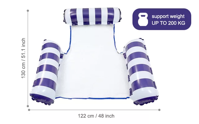 Vivi un relax totale con la sedia gonfiabile galleggiante Threo. Il suo design ti permette di reclinarti e sdraiarti sull'acqua, mantenendo la testa comodamente sopra la superficie. Adatta a utenti di varie altezze e pesi, il nostro dispositivo ti garantisce una posizione sicura e stabile in piscina.