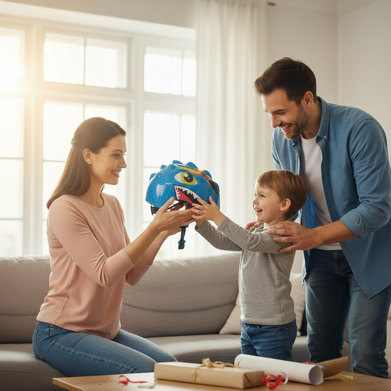 A mio figlio piace tantissimo il suo casco dinosauro! Lo indossa ogni volta e i colori vivaci rendono le uscite ancora più divertenti per lui.