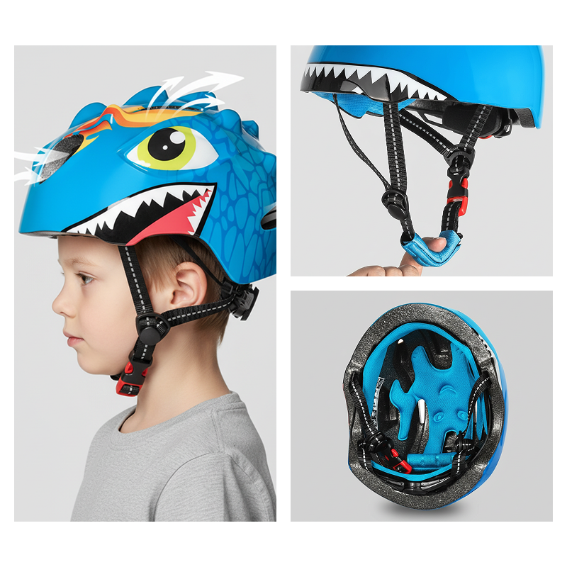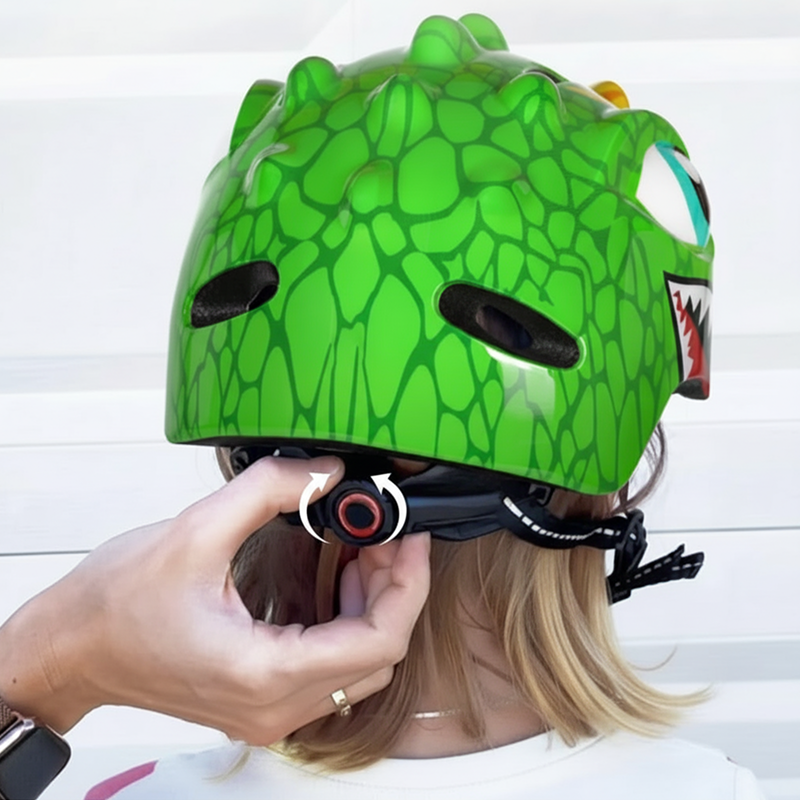 Il casco dinosauro rimane ben saldo sulla testa di mio figlio e ha già resistito a qualche caduta senza graffi. Lo consiglio vivamente per i piccoli ciclisti.