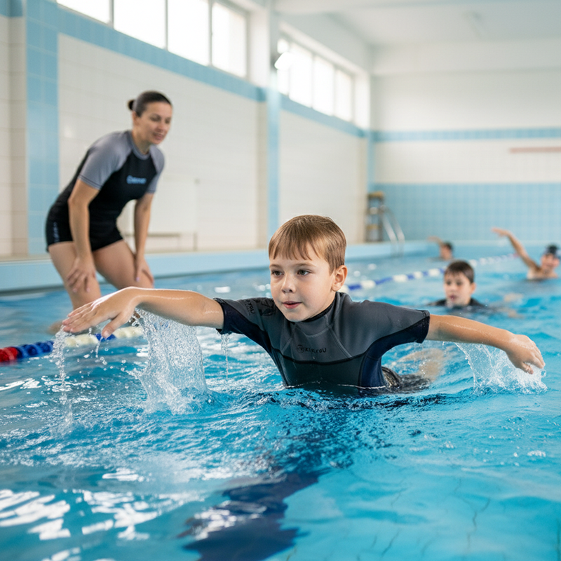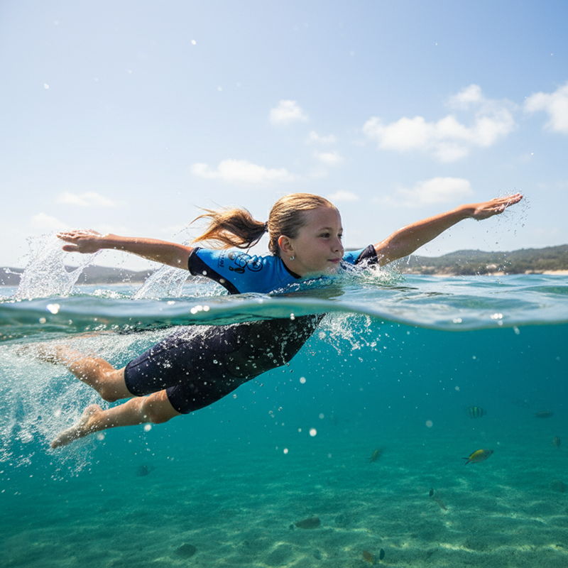 Le maniche corte e il materiale elastico favoriscono bracciate libere e fluide ogni volta. I bambini possono tuffarsi, nuotare o giocare senza sentirsi limitati o stretti.