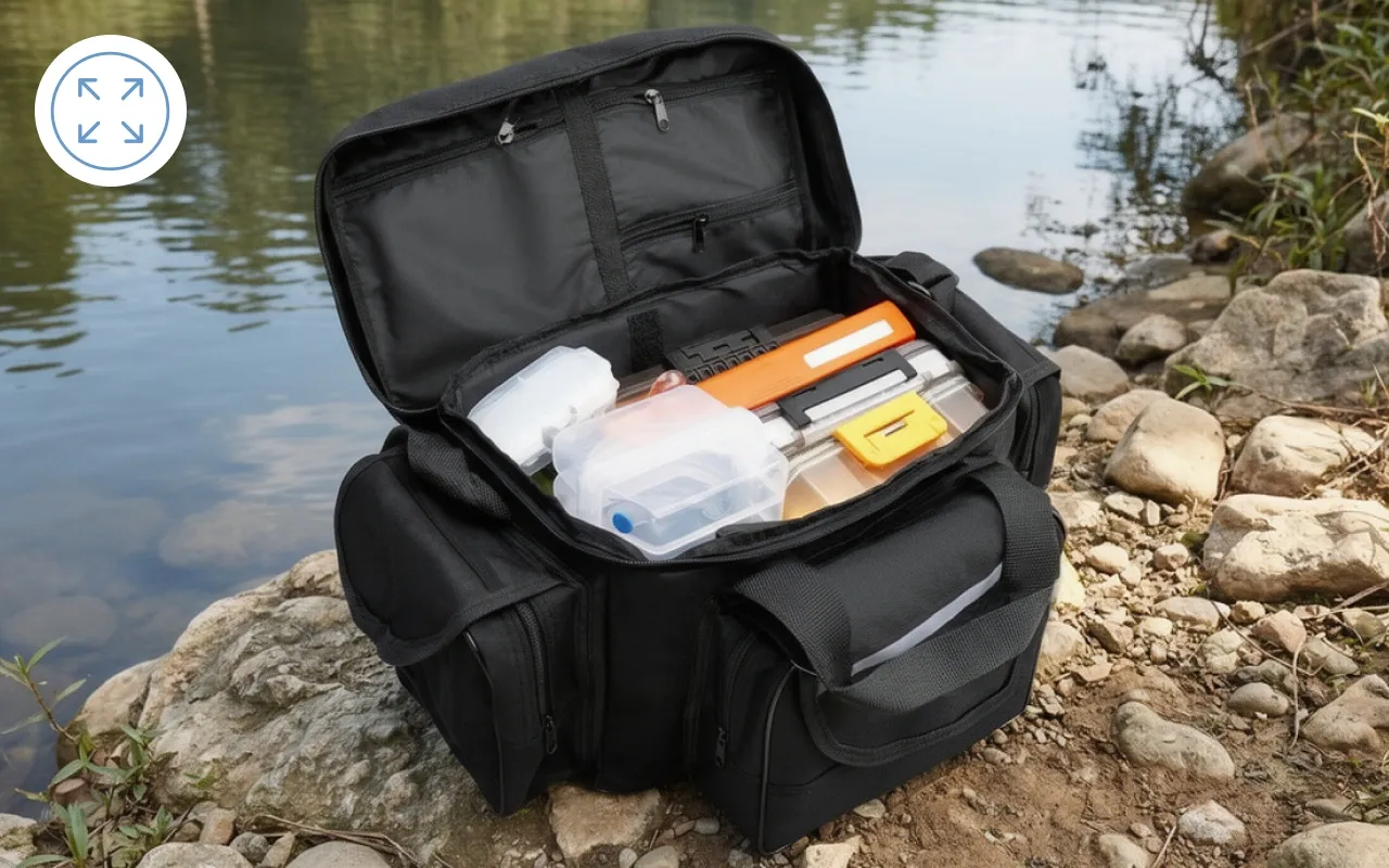 Porto questa borsa fuori ogni fine settimana. Davvero resistente e regge durante tutte le mie avventure sul fiume. Trovare ami ed esche è molto più facile ora.