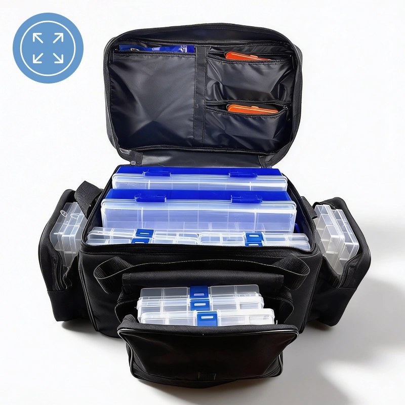 Questa borsa mi aiuta a preparare tutto velocemente. Le cerniere scorrono bene e ora organizzare fili e ami è semplicissimo.
