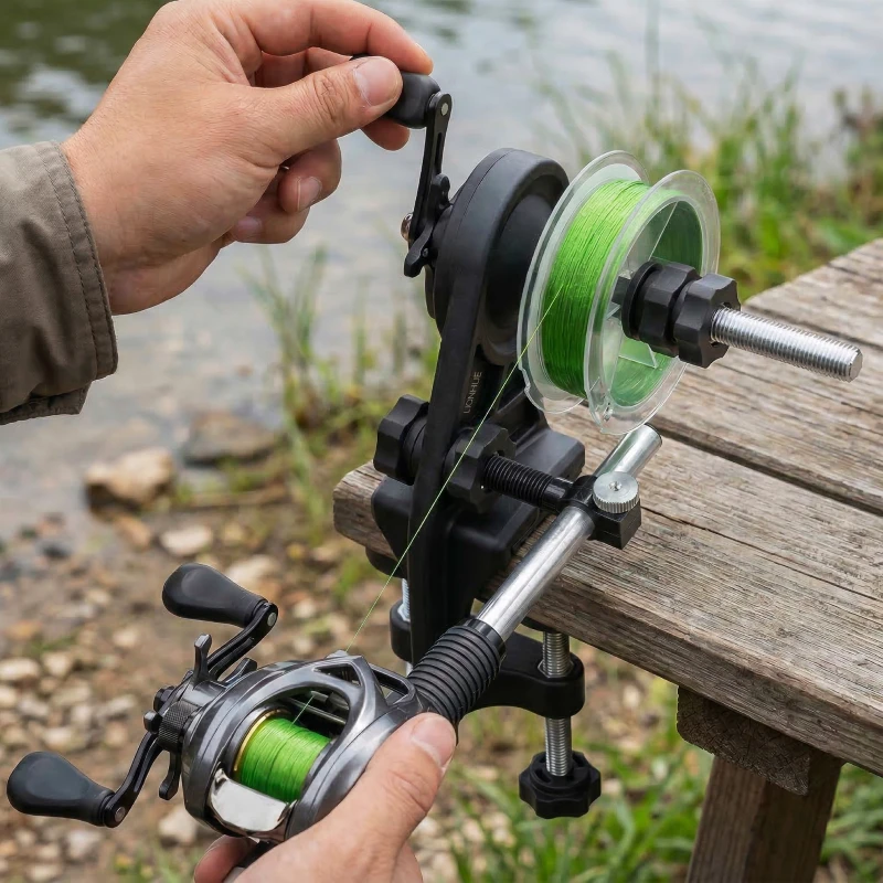 fishing line spooler, fishing line winder, fishing reel spooler