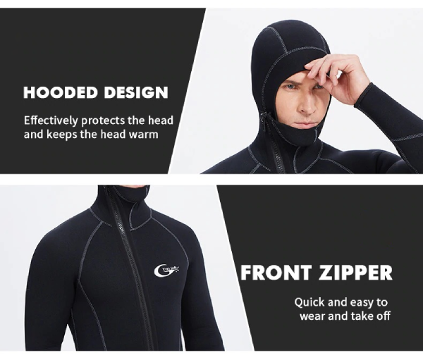 Materiale di buona qualità, non mi sono mai sentito così caldo in acque fredde. Adoro assolutamente la caratteristica con cappuccio—offre una grande protezione!