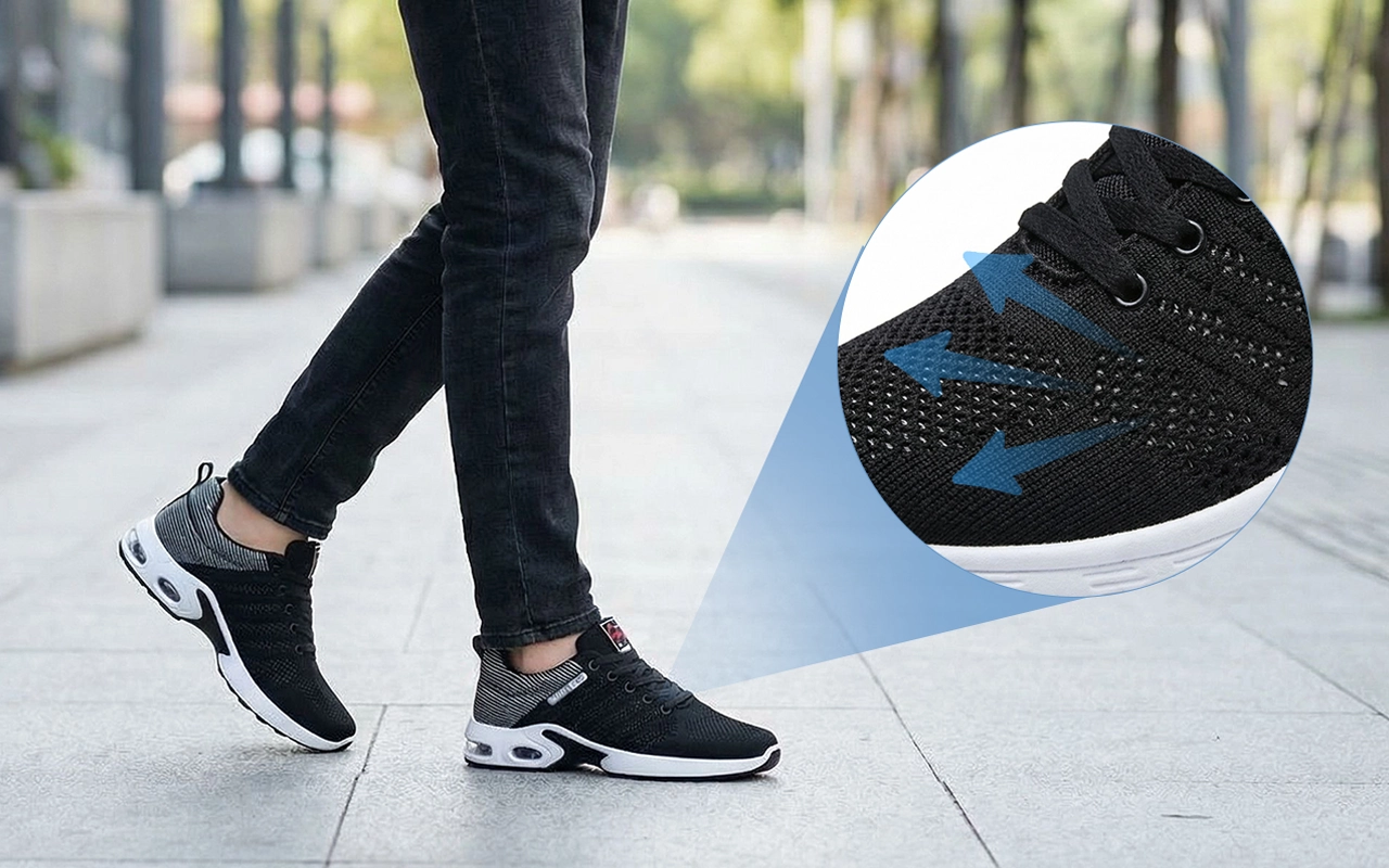 Tomaia in mesh traspirante che aiuta a mantenere i piedi freschi e asciutti. Rimani comodo per ore senza alcuna sensazione di soffocamento o umidità.