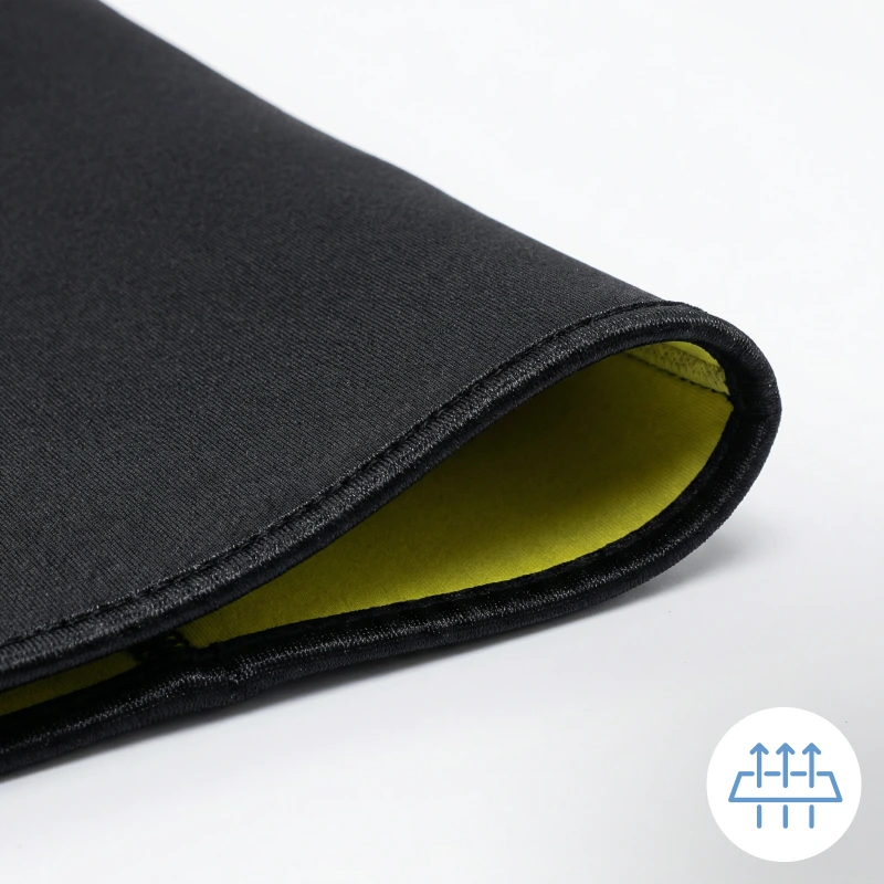 Il materiale flessibile consente la libera movimentazione durante l'allenamento o il riposo. Il rivestimento traspirante previene il surriscaldamento o le irritazioni della pelle.