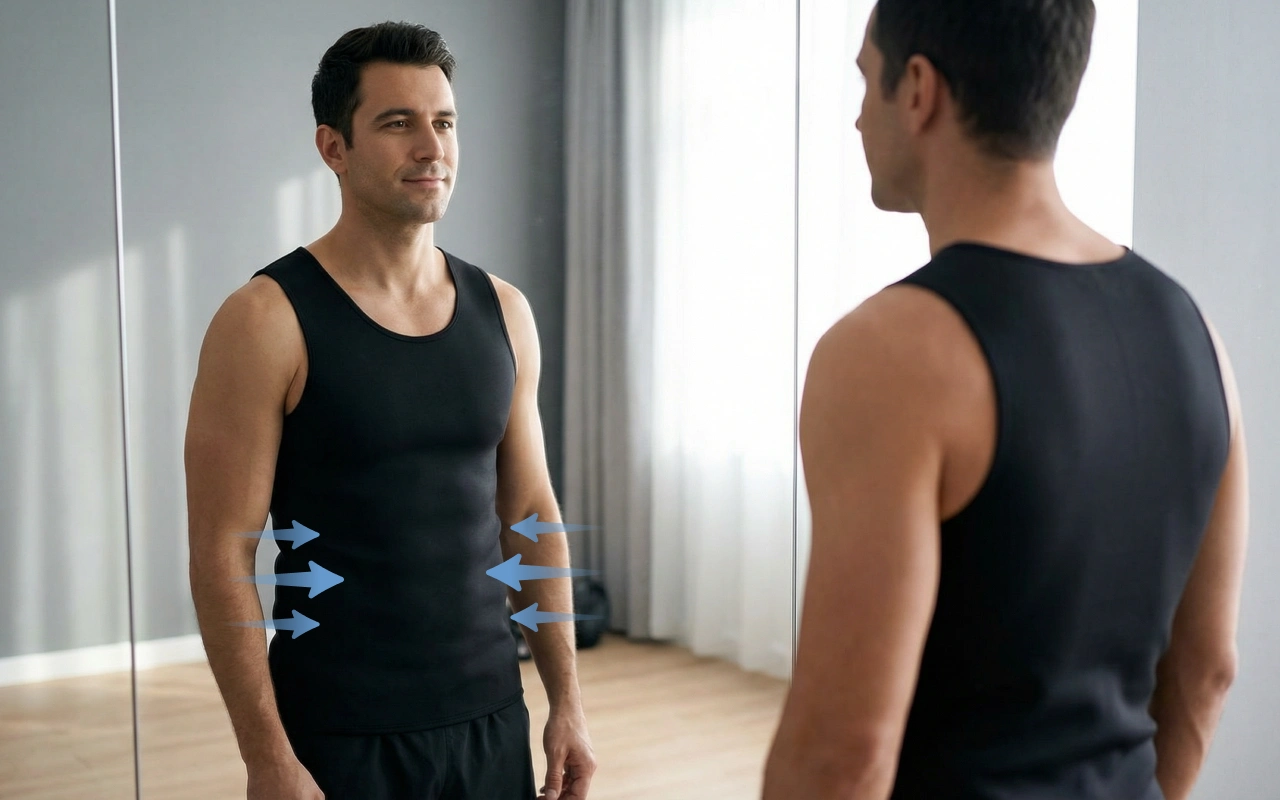 Buona canotta sauna, appiattisce la pancia e rimane comoda.