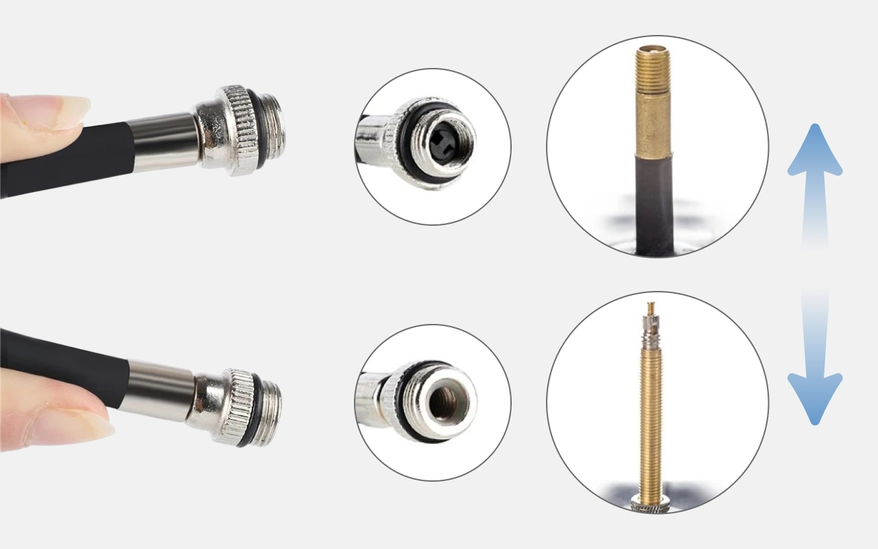 Passa senza problemi tra valvole Schrader e Presta in qualsiasi uscita. Nessun adattatore extra necessario per le tue esigenze ciclistiche.