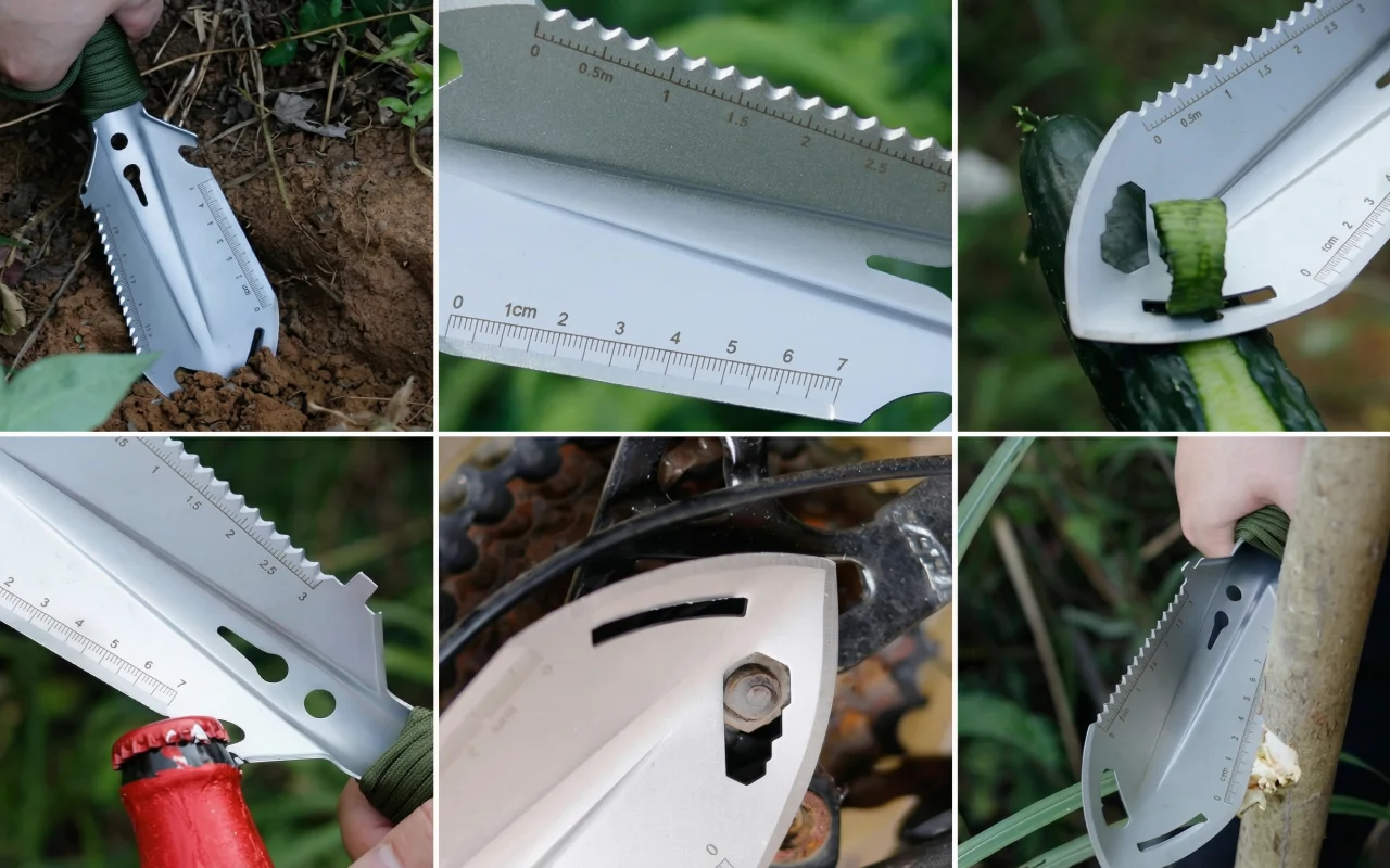 L’ho presa per la nostra scatola da campeggio di famiglia e la usano tutti, dallo scavare buche per i rifiuti al segare rami e persino per misurare facilmente le linee delle tende.