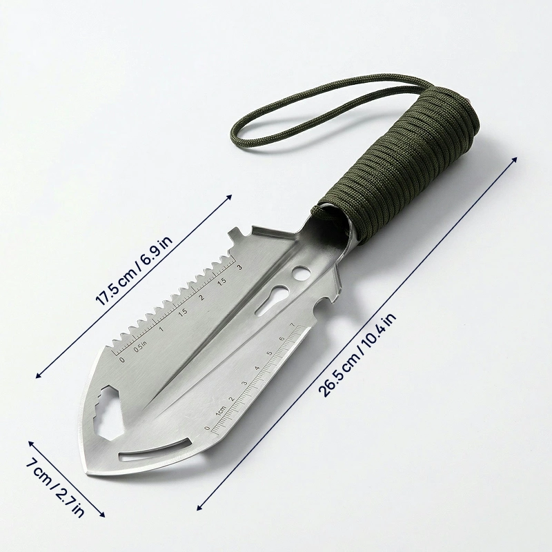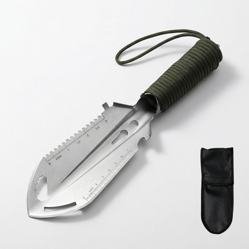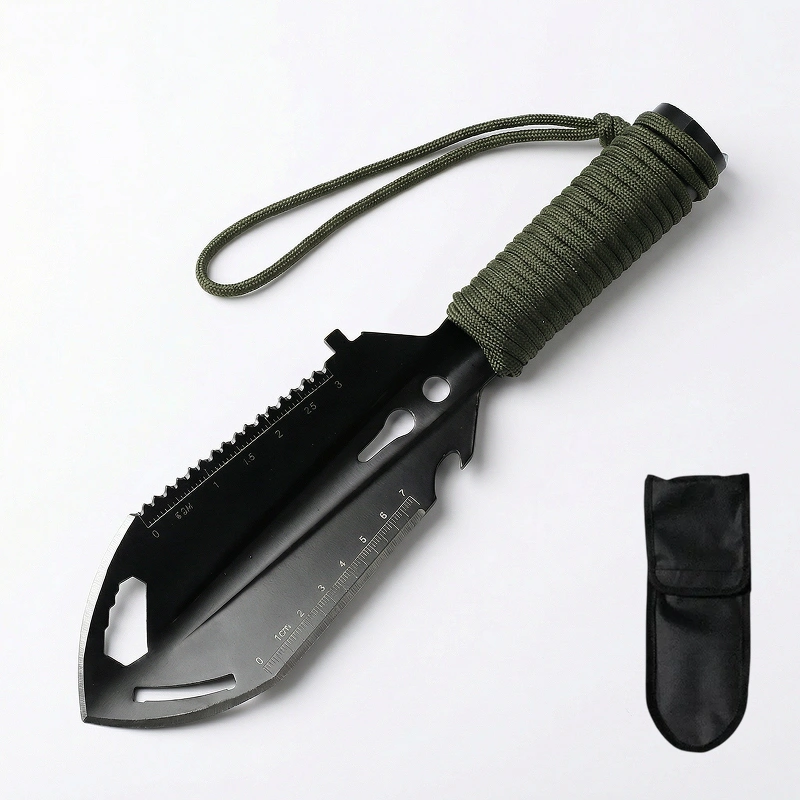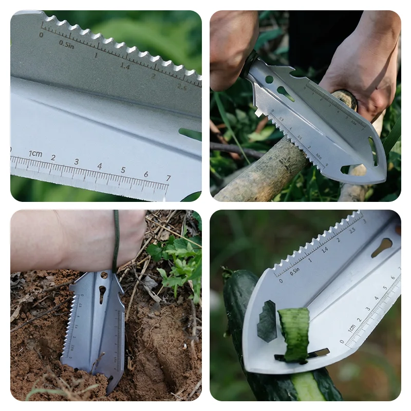 Affronta qualsiasi avventura selvaggia senza preoccupazioni o complicazioni. La pala da campeggio Threo rende ogni lavoro all'aperto rapido e semplice. Scava, taglia, misura o sega con un unico utensile robusto. Goditi la tranquillità sapendo di essere pronto a tutto. Rimani preparato ovunque ti porti il viaggio.