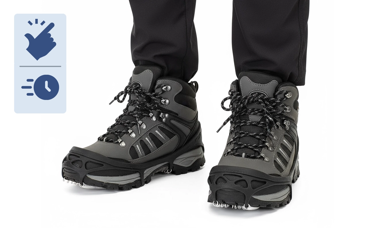 Li uso sui miei scarponi da trekking per i sentieri invernali. Si ripiegano nella tasca del cappotto, si mettono in un attimo e offrono un’ottima presa sulle salite ghiacciate.