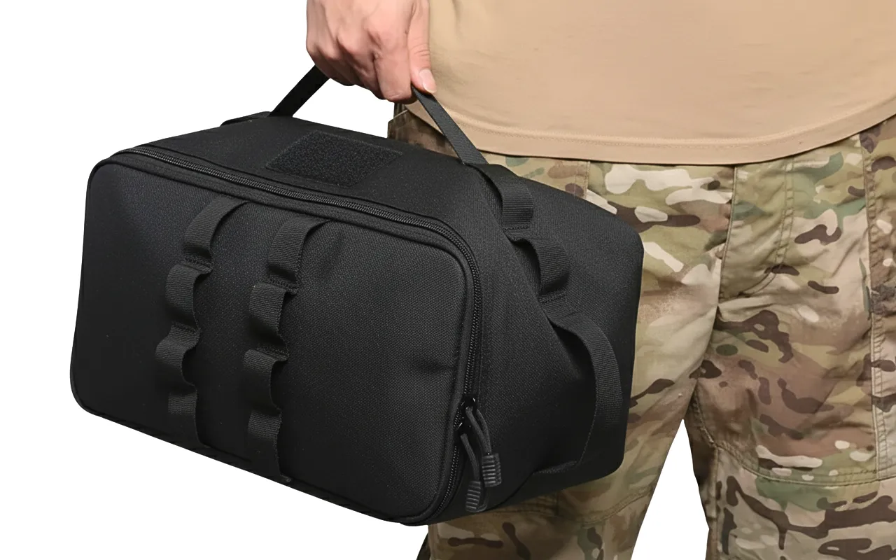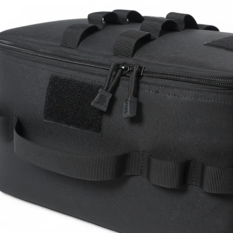 Il tessuto esterno resistente protegge l'attrezzatura da sporco, pioggia e urti. Tutto all'interno rimane pulito e al sicuro, anche in condizioni avverse.