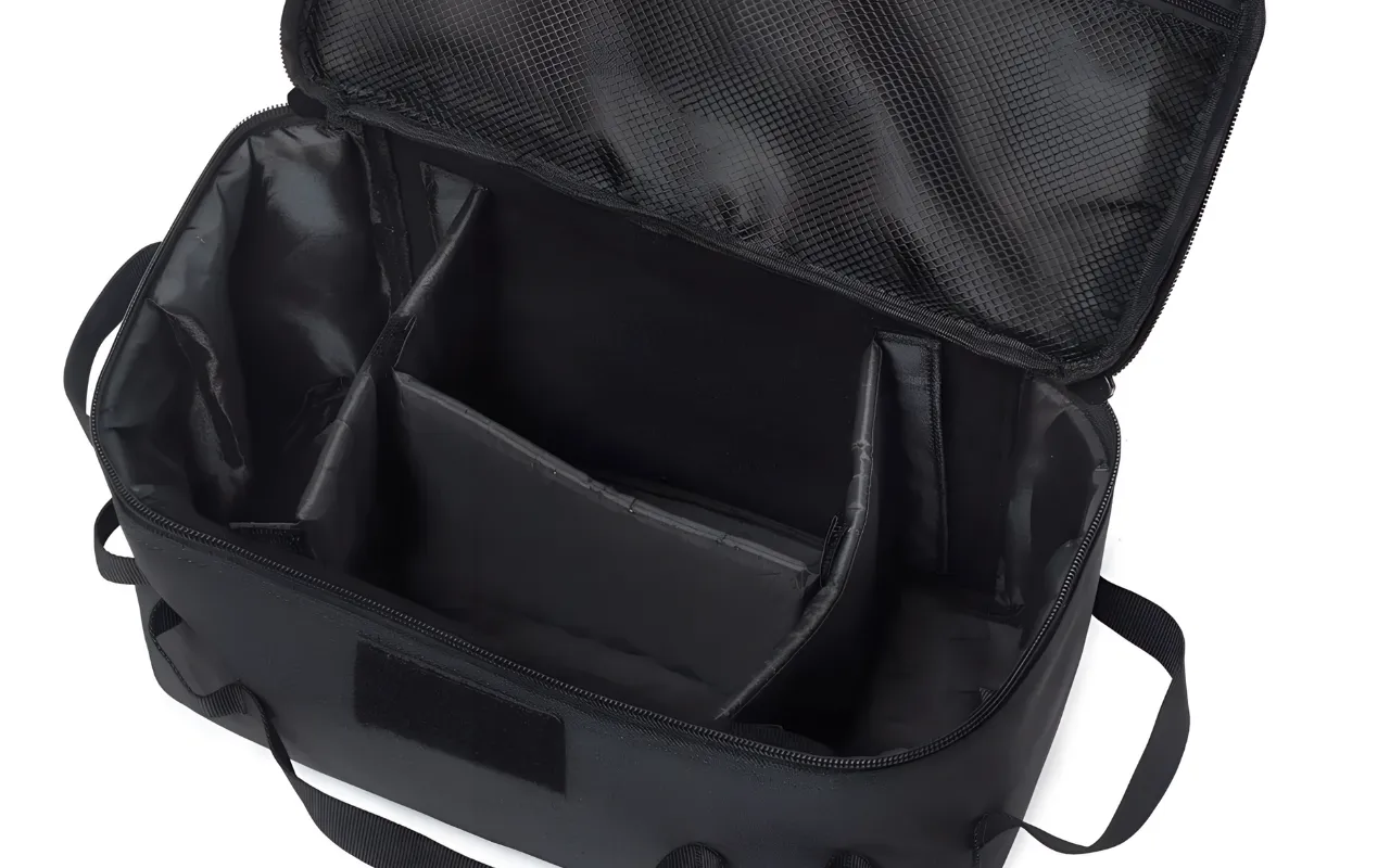 Adoro quanti scomparti ci sono dentro la borsa! Ho messo la mia lanterna, strumenti e persino snack. Pioggia o fango non entrano, fantastico.