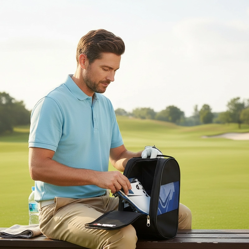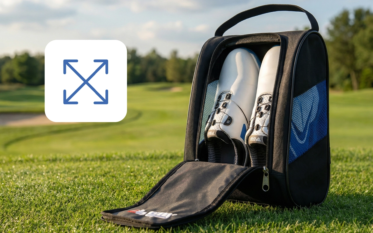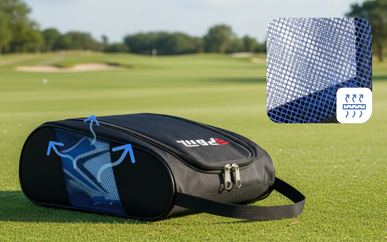 Questa borsa per scarpe mantiene le mie scarpe da golf fresche e asciutte tra una partita e l’altra. I lati in rete sono fantastici e adoro quanto sia facile mettere tutto dentro.