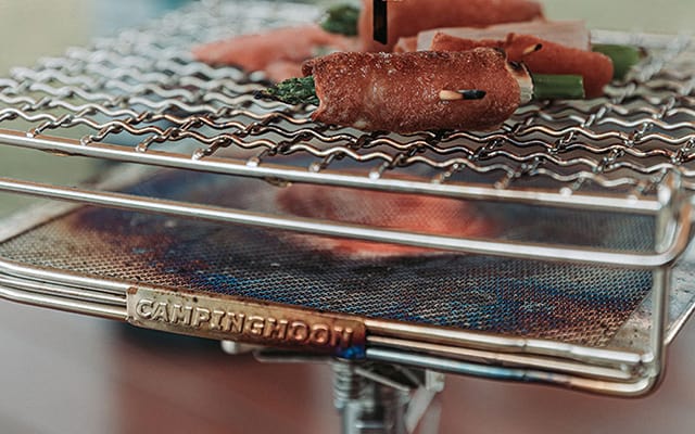 La mini griglia rende la preparazione del cibo all'aperto un gioco da ragazzi. Basta aprirla, posizionare il dispositivo sulla fonte di calore e iniziare a grigliare.